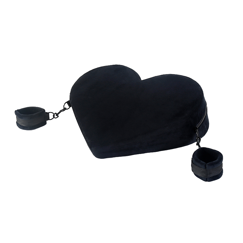 Black heart-shaped pillow with cuffs on both sides